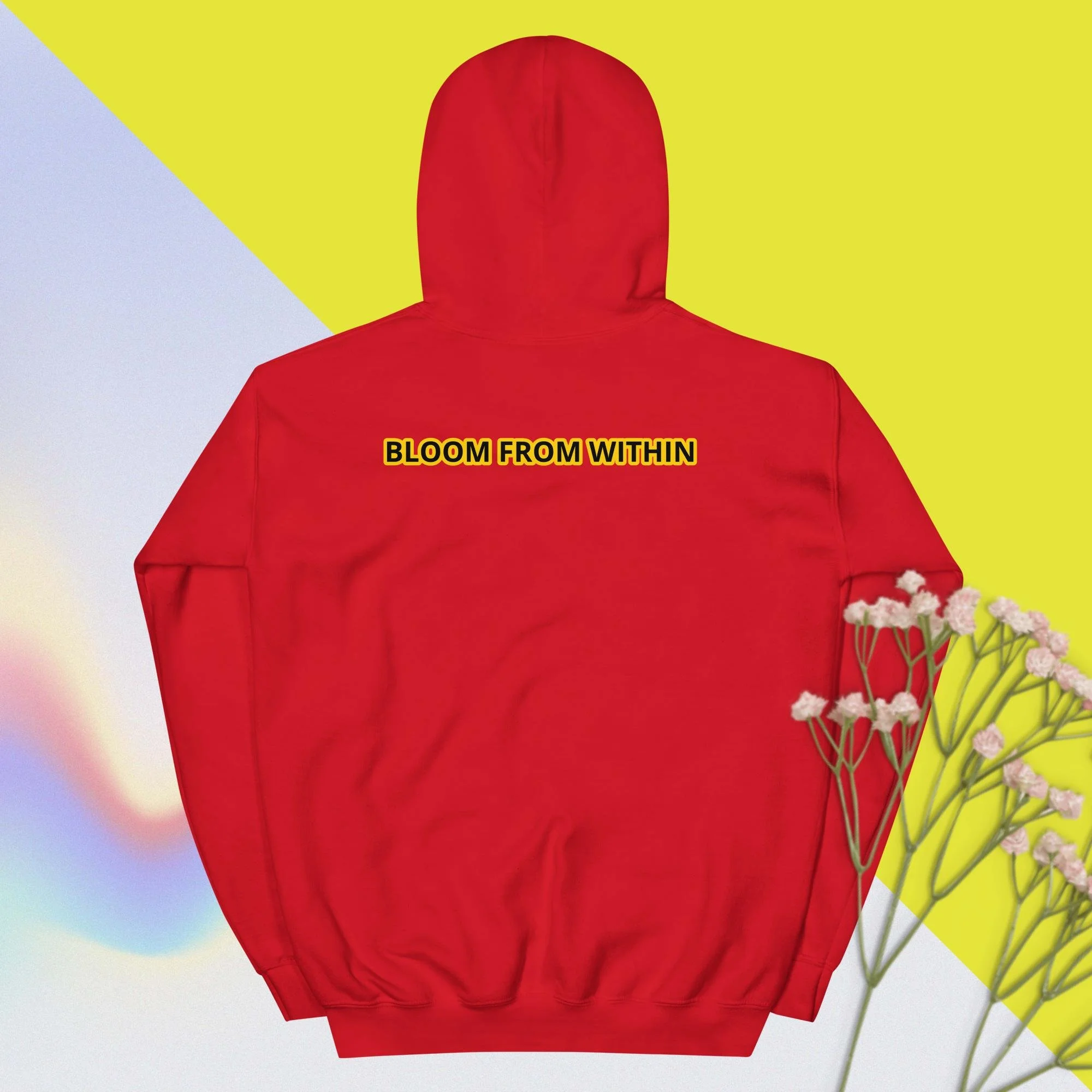Set against a clean backdrop with warm red and gold typography, the graphic creates strong contrast while maintaining a refined streetwear look. The hoodie balances visual impact with a minimalist structure, allowing the artwork to remain the centerpiece.