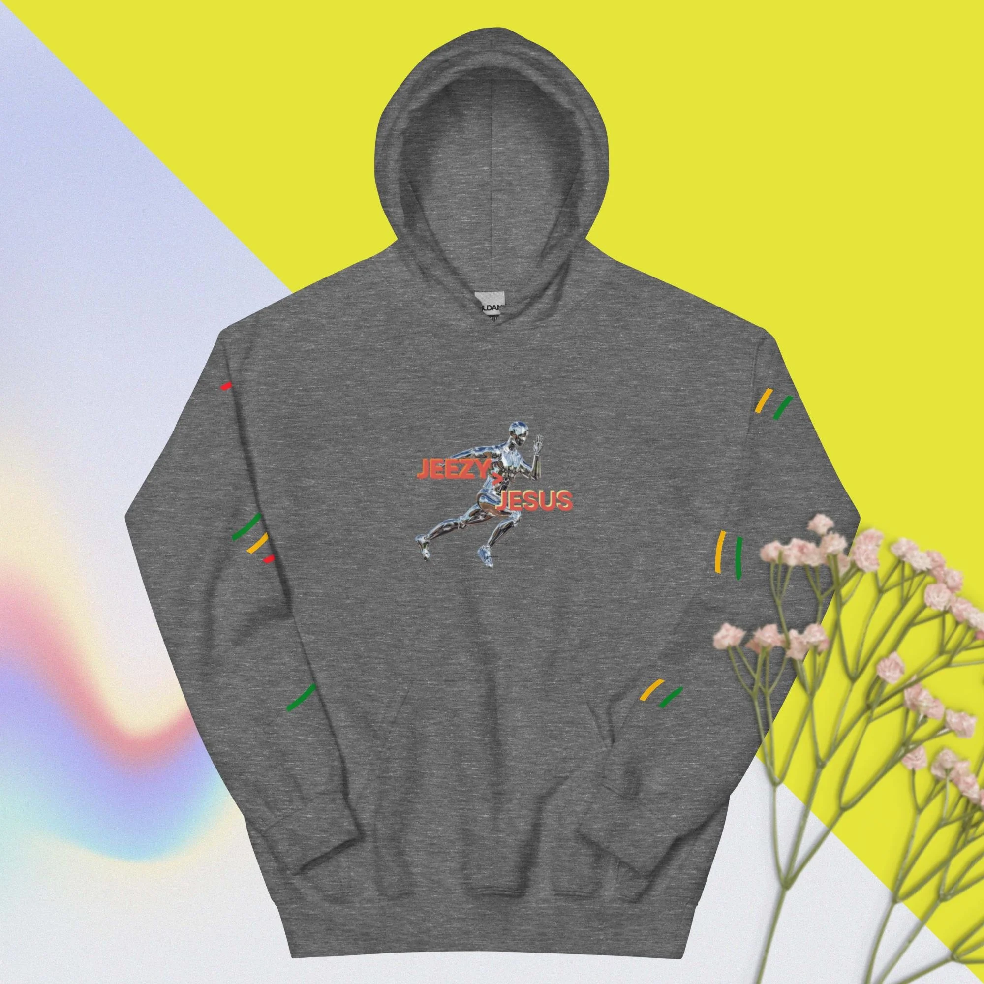 Bold design meets cultural commentary in the **JEEZY > JESUS Hoodie**. This piece blends contemporary streetwear aesthetics with a striking visual concept that captures the tension between modern celebrity culture and traditional belief systems.